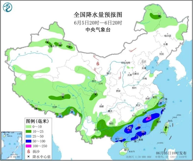 中央气象台6月5日18时继续发布暴雨黄色预警:预计,6月5日20时至6日20时,浙江南部和东部、江西中南部、福建北部和西部、湖南南部、广西中东部、广东大部等地的部分地区有大到暴雨。