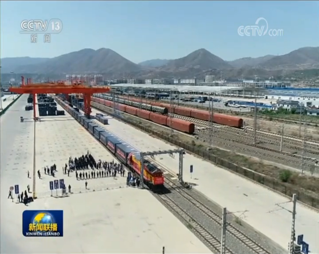 5日,满载着25组集装箱货物的“中吉乌”多式联运国际班列,从甘肃(兰州)国际陆港鸣笛首发,前往中亚。满载防疫物资的中欧班列从浙江义乌出发开往西班牙。