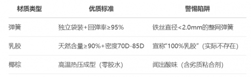 体重>80kg:慎选纯乳胶垫,优选独立袋弹簧+3D椰棕复合款
