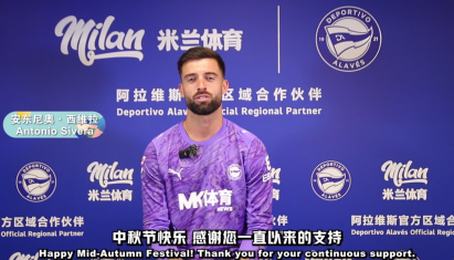 节日视频中,阿拉维斯竞技多位球员依次出镜,以真挚的语言送出节日祝福。边锋卡洛斯·比森特率先出场,用流畅中文温柔道出:“祝大家中秋节快乐。”随后,前锋托尼·马丁内斯带着笑意说道:“愿您在国庆假期与亲友相聚,度过一个温馨而美好的节日。”压轴出场的门将安东尼奥·西维拉则庄重致意:“感谢您一直以来的支持,祝您双节安康,阖家幸福。”三位球员虽远在西班牙,却借由镜头传递出节日的温度与诚意,将祝福送至亚洲每一位球迷心中。